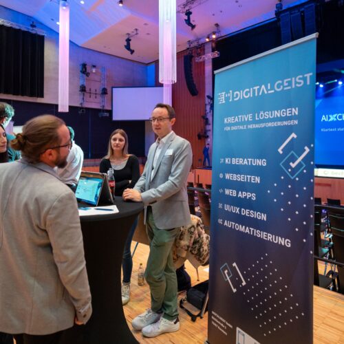 Ergänzt wurde das Konferenzprogramm durch eine begleitende Ausstellung, die praxisnahe Use Cases und konkrete Lösungen präsentierte. Hier konnten Teilnehmende direkt mit Anbietern und Experten ins Gespräch kommen, Technologien einordnen und Entscheidungsgrundlagen für den eigenen KI-Einstieg gewinnen. Die Ausstellung unterstrich, wie vielfältig und anwendungsnah KI heute bereits eingesetzt wird.