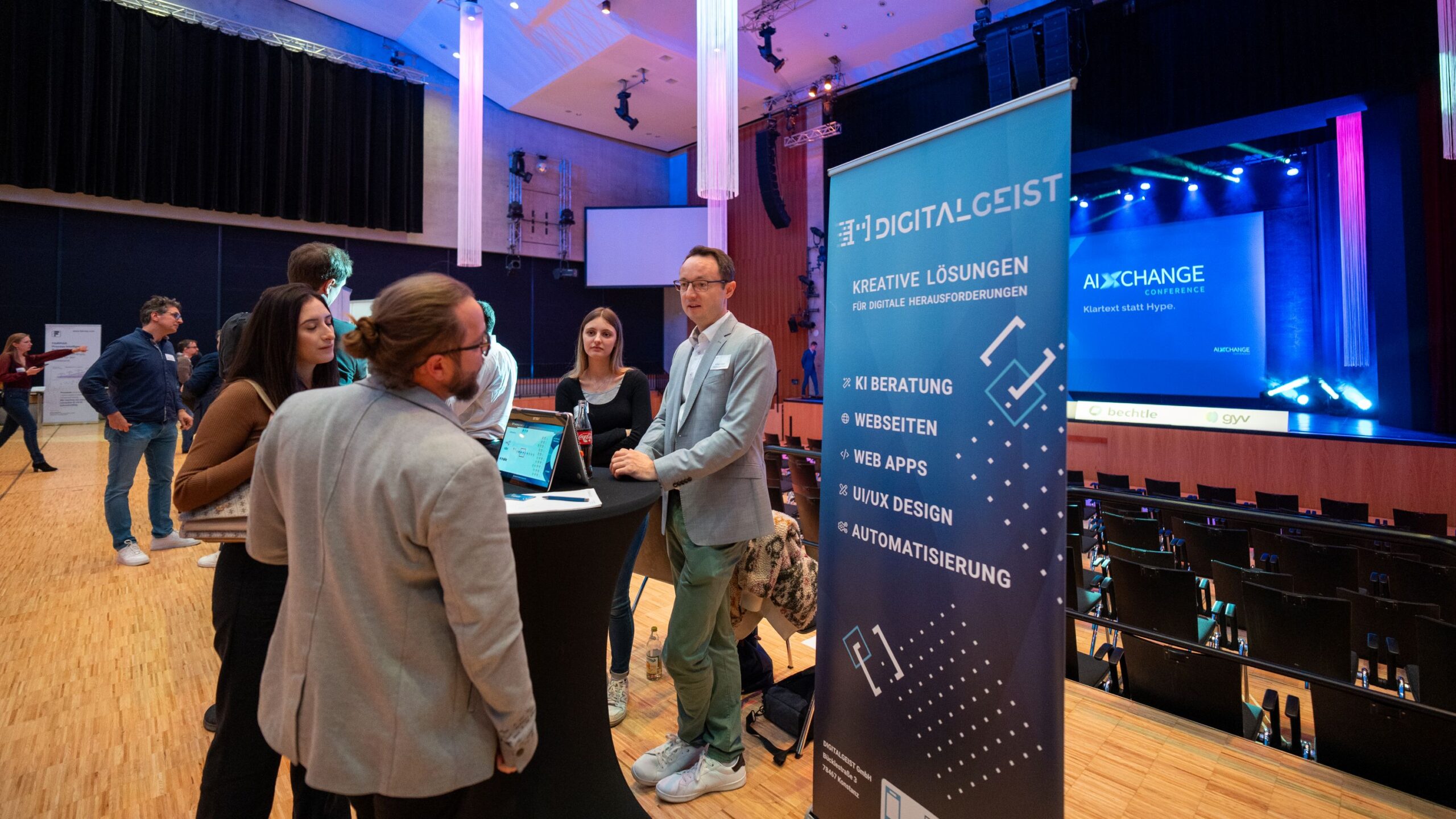Ergänzt wurde das Konferenzprogramm durch eine begleitende Ausstellung, die praxisnahe Use Cases und konkrete Lösungen präsentierte. Hier konnten Teilnehmende direkt mit Anbietern und Experten ins Gespräch kommen, Technologien einordnen und Entscheidungsgrundlagen für den eigenen KI-Einstieg gewinnen. Die Ausstellung unterstrich, wie vielfältig und anwendungsnah KI heute bereits eingesetzt wird.