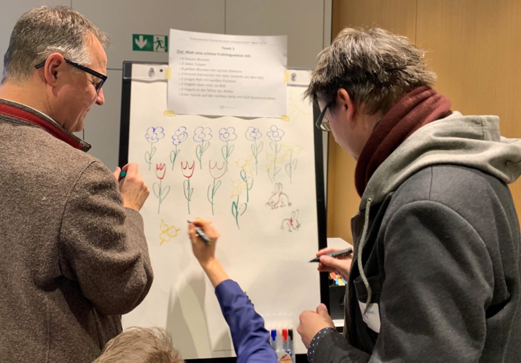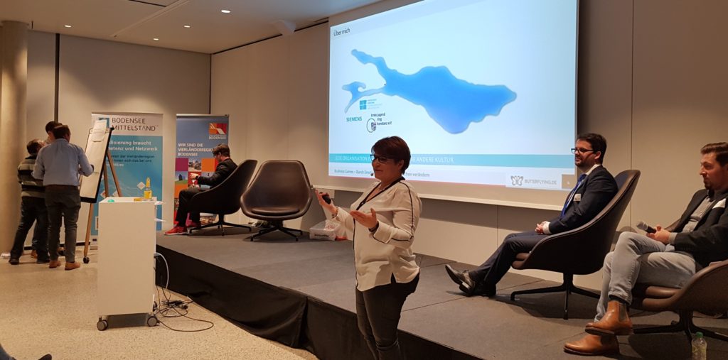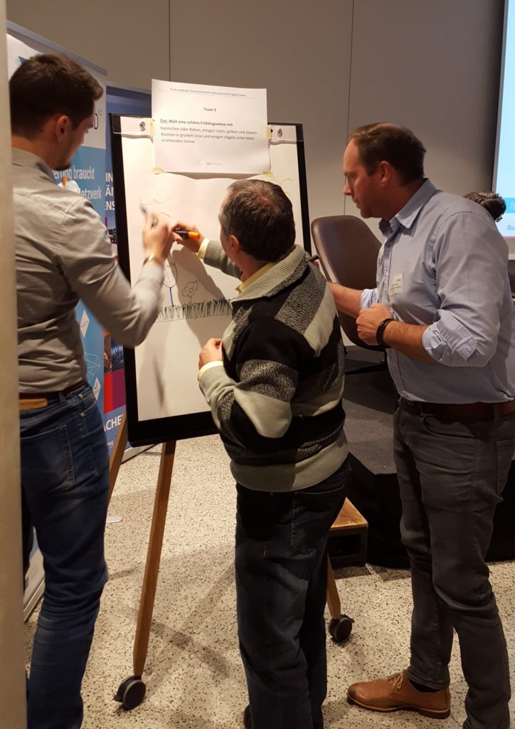 Claudia Haußmann, Agile Coach bei butterfyling.de, bestätigte dies: „Ein entsprechendes Mindset ist die Grundlage dafür, dass der Kulturwandel gelingt. Dabei stehen die Emotionen und die Freude immer im Vordergrund.“ Sie zeigte anhand verschiedener Agile Games, wie ein Kulturwandel im Unternehmen angestoßen werden könne. Die Geschäftsführung sei der aktive Treiber des Kulturwandels und schaffe das entsprechende Umfeld. So sei es essenziell, dass die eigenen Mitarbeiter befähigt werden und es eine gelebte positive Fehlerkultur gebe. An einem Beispiel mit Freiwilligen aus dem Publikum machte Claudia Haußmann deutlich, wie wichtig Freiheiten für die Arbeit und das anschließende Ergebnis sind. Während ein Team eine vorbereitete Liste abzuarbeiten hatte, durfte das zweite Team frei entscheiden, wie es an die gestellte Aufgabe herangeht. Das Experiment zeigte deutlich: das Team ohne detaillierte Vorgaben tat sich am Ende leichter, die gestellte Aufgabe zu bewältigen.