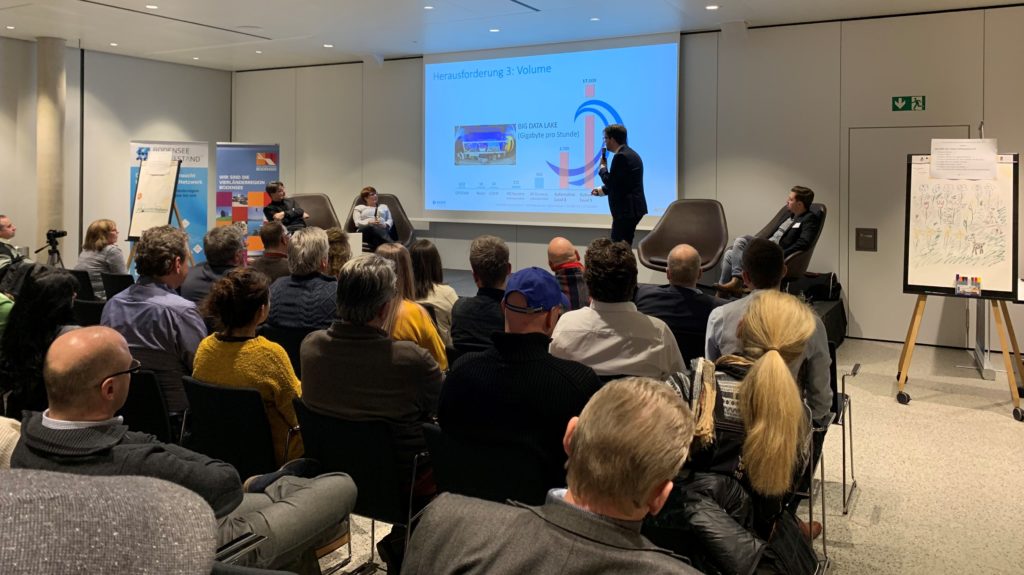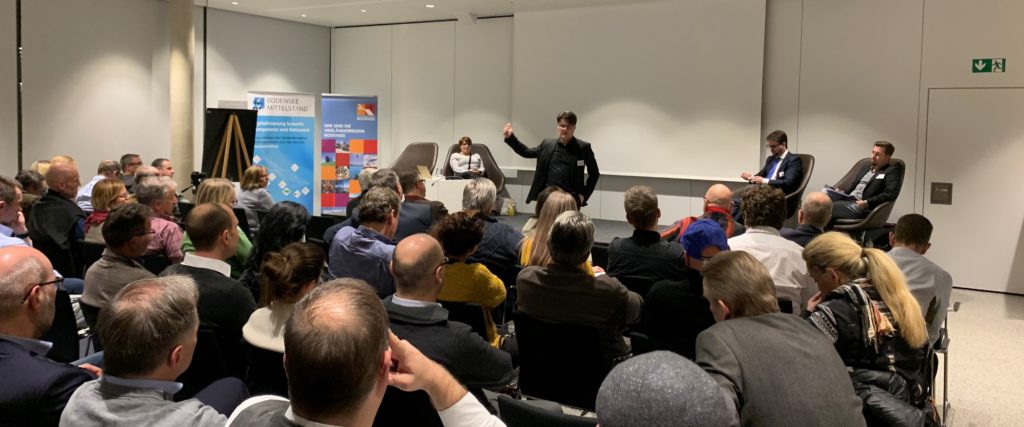 Damit die digitale Transformation im Unternehmen erfolgreich sein kann, muss meist zunächst ein Wandel in der Unternehmenskultur stattfinden. Wie dieser gelingen kann und wer im Unternehmen verantwortlich ist, eine Digital Culture zu etablieren, erfuhren die rund 120 Teilnehmer am 31.01.2019 in der Inselhalle Lindau bei „Der Weg zu einer Digital Culture.“ Die Veranstaltung gehört zur Reihe „Digitalisierung als Chance“, die von cyberLAGO, dem digitalen Kompetenznetzwerk am Bodensee, in Kooperation mit dem Landkreis Lindau und Allgäu Digital veranstaltet wurde. „Natürlich wissen wir, dass Digitalisierung für jedes Unternehmen etwas anderes bedeutet, dass es für die digitale Transformation nicht den einen richtigen Weg gibt. Daher wollen wir den Unternehmen sinnvolle Tools an die Hand geben und ihnen praxisnah veranschaulichen, wie man diese nutzen kann, wohin es führen kann. Und sie natürlich mit Experten aus der Bodenseeregion vernetzen“, erklärte Tobias Fauth, Geschäftsführer von cyberLAGO, das Ziel der Veranstaltung, bei der gleich drei Experten auf der Bühne waren: Mark Joachim, Geschäftsführer der tarienna GmbH, Claudia Haußmann, Agile Coach bei butterflying.de, und Simon Papel, Gruppenleiter System Development bei der CMORE Automotive GmbH.