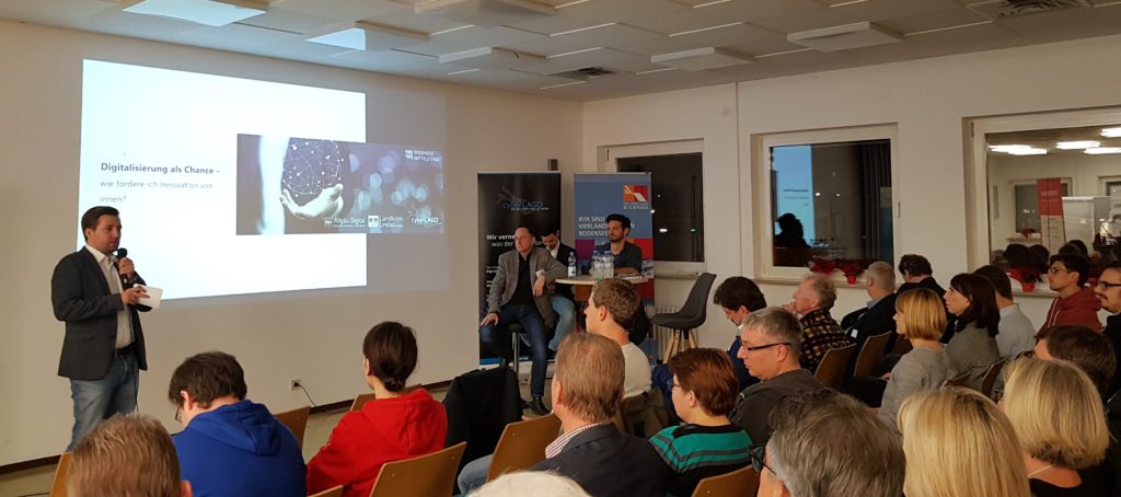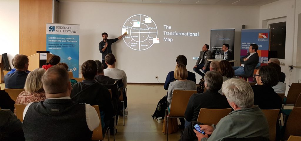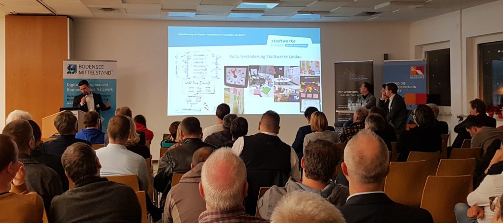 Unternehmen müssen innovativ sein und bereit für Veränderungen, um auf dem Markt bestehen zu können. Das bedeutet oft, unbekannte Wege einzuschlagen und sich an neue Gegebenheiten anzupassen. Doch welche Rahmenbedingen müssen geschaffen werden, damit neue Ideen umgesetzt werden können und innovatives Denken im Unternehmen gefördert wird? Darum ging es bei der Veranstaltung „Digitalisierung als Chance – wie fördere ich Innovation von innen.“ Die Ravensburger AG, die Bitzilla Agentur und die Stadtwerke Lindau zeigten unter anderem, was Innovation konkret für ihr Unternehmen bedeutet und erklärten anhand praxisnaher Beispiele, welche Rolle der Mensch bei der digitalen Transformation spielt.