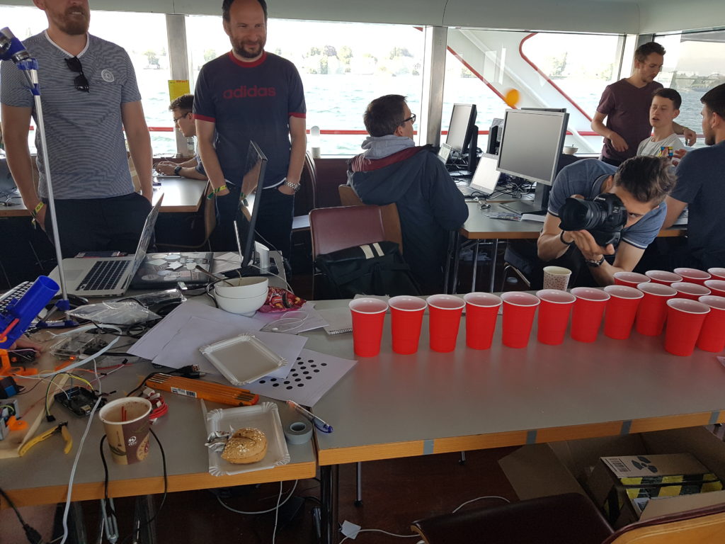 Der nächste Hafen wird angefahren: Romanshorn. Hier erwartet die Hacker ein Grußwort von Stadtpräsident David H. Bon, der sich ebenfalls begeistert zeigt vom Hackathon und von den innovativen Projekten an Bord, sowie ein reichhaltiges Mittagsbuffet bei Musik direkt am Hafen, um sich für den anstehenden Endspurt zu stärken.