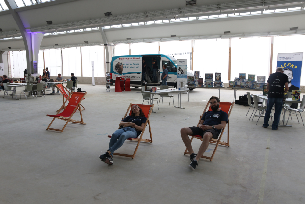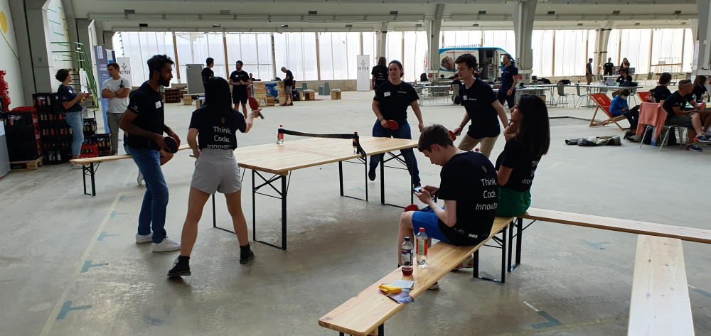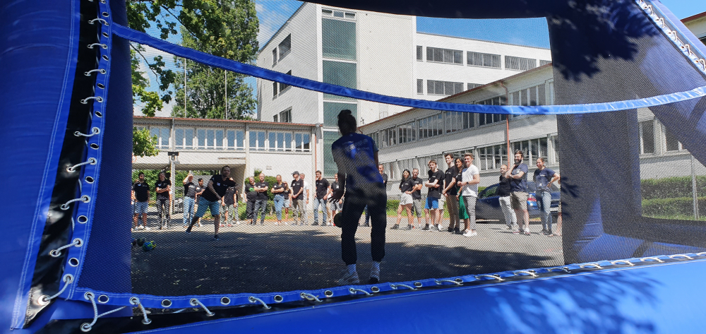 Neben dem konzentrierten Arbeiten kam auch der Spaßfaktor nicht zu kurz: die Spaghetti-Marshmallow-Challenge forderte die Teamarbeit nochmals heraus, beim Handballtore werfen gegen die Profis vom SV Allensbach, beim Tischkicker oder Tischtennis zeigte sich die sportliche Seite. Wer es lieber ruhiger wollte, konnte sich im Spieleeck das ein andere Spiel oder Puzzle nehmen, ein Eis in der Lounge essen oder im Massagesessel die nötige Entspannung finden. Spätestens bei der Einlage vom Improtheater waren die Lachmuskeln dann ebenfalls trainiert.