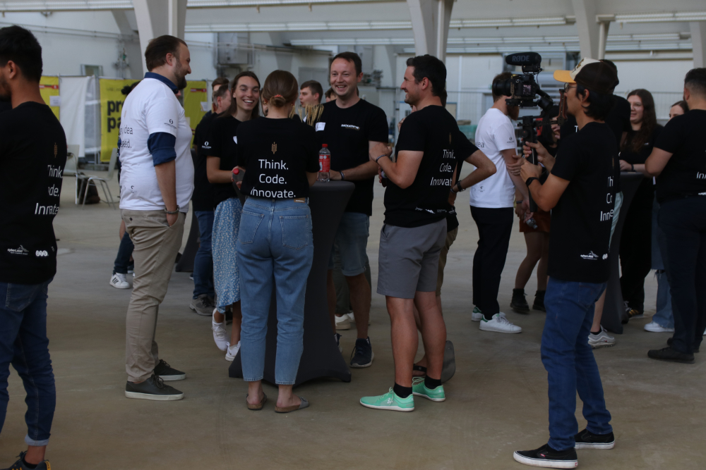 Die 16 Projektideen der Teilnehmer haben mal wieder gezeigt, wie viel Kreativität in den einzelnen Köpfen steckt. 11 Projektteams haben sich schließlich gefunden und gehackt, was das Zeug hält. Für die acht Mentoren gab es einiges zu tun. Die goldene Ähre gab es zum Schluss für das Team „Echtzeit Lehrerfeedback“, die mit ihrem Tool feeba ein anonymes Feedback im Unterricht ermöglichen.