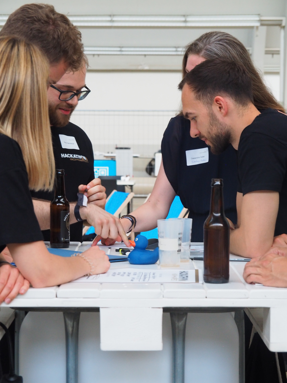 Die Workshops sind so konzipiert, dass die Teilnehmern für sich persönlich und ihre Arbeitsweisen unterschiedliche Learnings mitnehmen als auch Hilfestellung für die Teamarbeit während des Hackathons erhalten. Anna-Lena Murzin führte in die unterschiedlichen Teamrollen innerhalb eines Teams ein und gab ihr Wissen bezüglich effizienter Teamarbeit weiter. Erik Stromeyer bereitete die Teams auf die Abschlusspräsentation vor und gab Tipps für einen überzeugenden Pitch. Claudia Haußmann und Anne Bergmann luden die Teilnehmer zum Abschluss zur Team-Retrospektive ein, bei der die Teamarbeit reflektiert wurde.