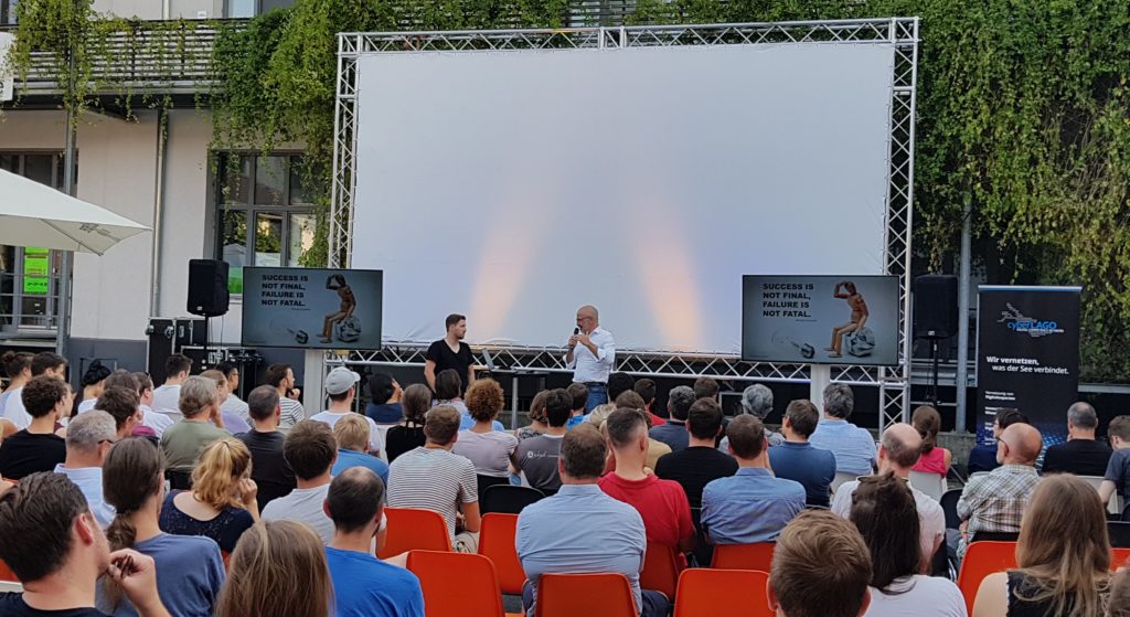 Irgendwie geht es immer weiter. Eine Floskel, die man vor allem dann zu hören bekommt, wenn etwas nicht so läuft wie geplant oder wenn ein Vorhaben gescheitert ist. Bert Overlack, Mark Leinemann und Marco Deutschmann haben genau solche Situationen durchlebt. Auf unterschiedliche Weise sind sie gescheitert und mussten lernen, damit umzugehen. Vor rund 160 Teilnehmern erzählten sie ihre Geschichten am 24. Juli 2019 bei der fünften Konstanzer Fuckup Night und berichteten, was sie aus ihren Fehlern gelernt haben.