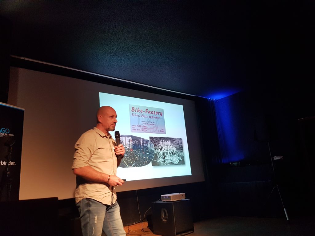 „Wie lange habe ich Zeit? Zwei Stunden, oder?“, fragte Achim Schulz zu Beginn seines Auftritts. Schnell wurde klar, dass diese Geschichte nicht eben mal kurz erzählt ist. Sein Hobby zum Beruf machen, das war seine Wunschvorstellung, als er sich mit seiner ersten eigenen Bike-Factory selbständig machte. Das Geschäft lief anfangs gut, „aber ich konnte nicht mit dem Geld umgehen“, gibt Achim Schulz zu. Diese Tatsache endete schließlich in der Privatinsolvenz. „Ich hatte zeitweise nicht einmal Geld für einen Döner.“ Doch Achim Schulz ließ sich nicht unterkriegen und stieg bei einem Freund ins Geschäft ein, das wiederum mit Fahrrädern zu tun hatte. Das Geschäft lief auf Hochtouren, innovative Ideen wie das „Klima-Bike“ wurden ins Leben gerufen, schnell der zweite Laden eröffnet. Auf den Höhenflug folgte jedoch schnell der Sturzflug. Der Freund erkrankte, dadurch entstanden viele Probleme, der Laden ging letztlich den Bach runter. Nach weiteren Rückschlägen ist Achim Schulz gesundheitlich und seelisch am Tiefpunkt. Mithilfe der Familie und Freunde findet er seinen Weg zurück, ist mittlerweile erfolgreicher Coach. „Ich habe ein unglaubliches Ur-Vertrauen darin, dass es immer irgendwie weitergeht. Das hat mich oft gerettet.“ Was er jetzt anders macht? „Ich achte mehr auf mich, nehme mir bewusst Auszeiten und bin vorsichtiger geworden.“