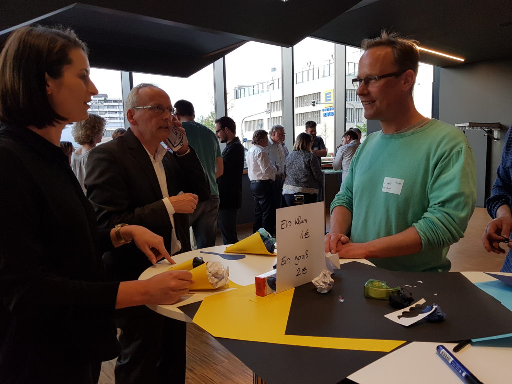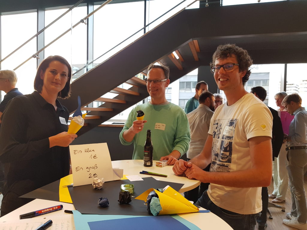 Aspekte, die bei der Kundenorientierung eine wichtige Rolle spielen. Denn als Unternehmen herauszufinden, worauf es den Kunden wirklich ankommt, setzt einen Perspektivenwechsel voraus. Deshalb nahmen die Teilnehmer verschiedene Rollen und Blickwinkel ein, um am Ende den Nutzen ihres Produkts oder ihrer Dienstleistung bewerten zu können. Wie kann zum Beispiel der Check-In im Hotel vereinfacht werden? Taugt die Online-Vorbestellung per App für eine Eisdiele?