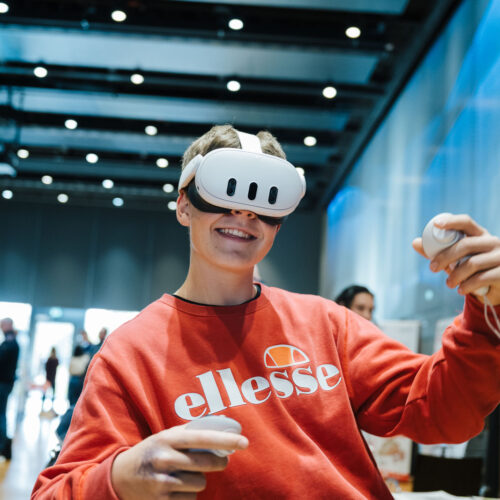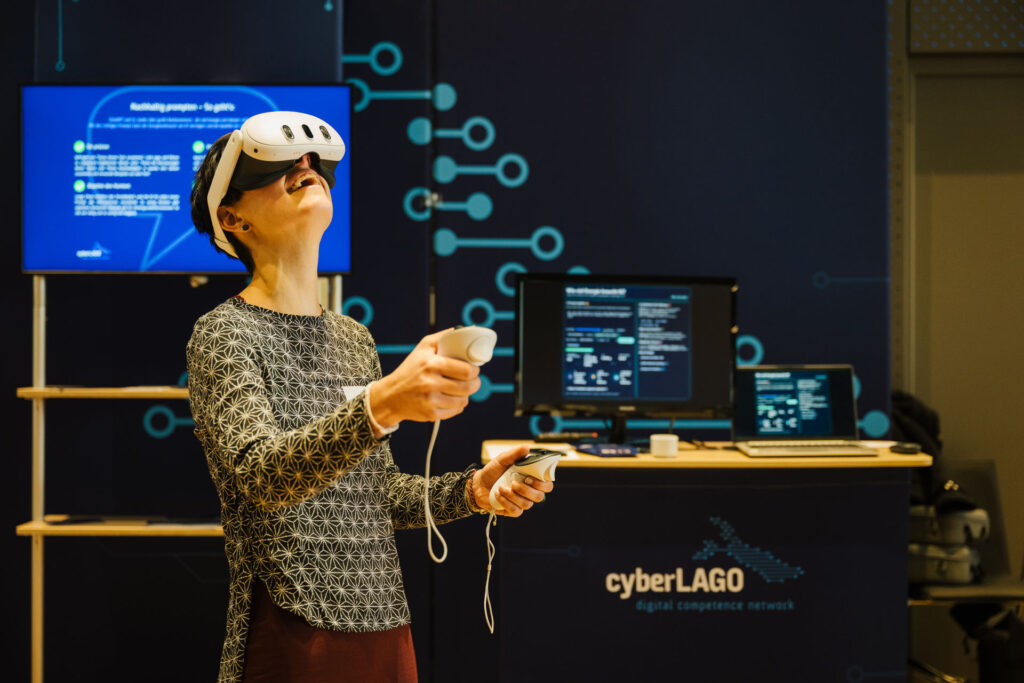 Auch in der Digitalbranche sind Nachhaltigkeitsthemen wichtiger denn je. Am cyberLAGO-Stand gab es gleich mehrere Formate zu entdecken, darunter ein VR-Nachhaltigkeitsspiel, bei dem die Spieler in einer immersiven Umgebung die Zukunft des Bodensees „retten“. Vor allem Schulklassen erlebten damit spielerisch, welche Entscheidungen welche Folgen haben.