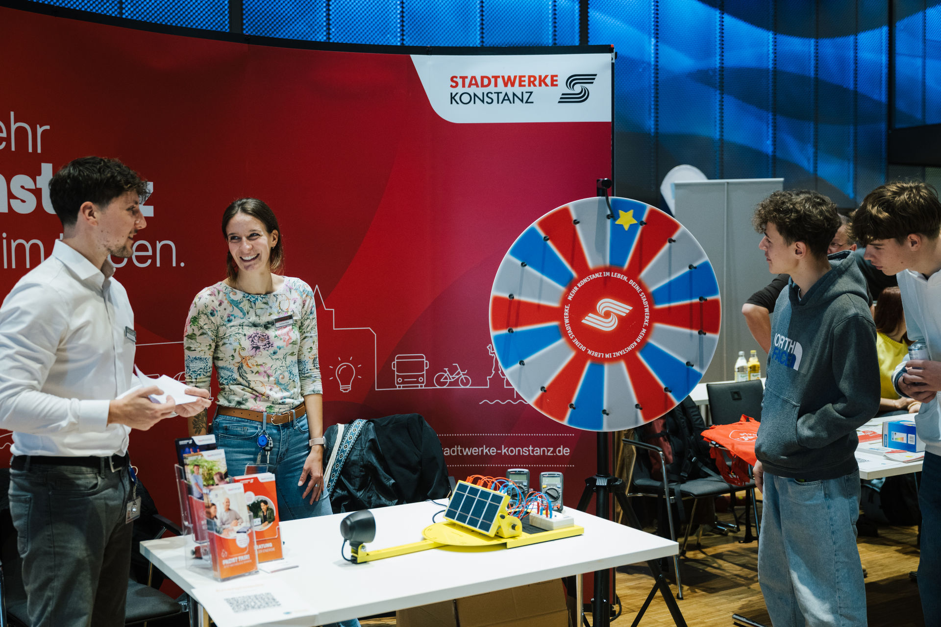 Herzstück der Energiewelten war der thematisch gestaltete Parcours: An Stationen von Unternehmen und Institutionen aus der Bodenseeregion wurde Energie greifbar, die verschiedenen Stände waren informativ, spielerisch und dialogorientiert. Teilnehmer konnten Fragen stellen, ausprobieren, vergleichen und sich direkt mit Fachleuten austauschen. Ergänzt wurde das Angebot durch verschiedene Fachworkshops, Stammtischgespräche und die Pitch-Stage die einzelne Themen vertieften und praxisnahe Perspektiven eröffneten.