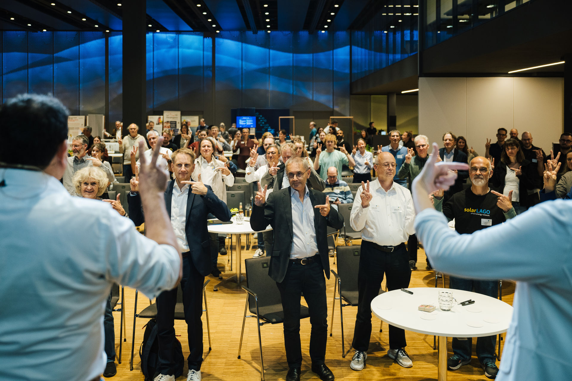 Den Schlusspunkt setzte ein energetisches Resümee der Improtheater Konstanz Show: In einem „Best of“ griff das Ensemble die Energie-Themen des Tages auf, verdichtete Eindrücke, brachte Perspektiven zusammen und zeigte, dass auch komplexe Fragen Raum für Leichtigkeit und neue Zugänge haben. Bei gemeinsamem Networking inklusive DJ konnten die Teilnehmer einen Tag voller Energie, Innovation und Zuversicht ausklingen lassen.